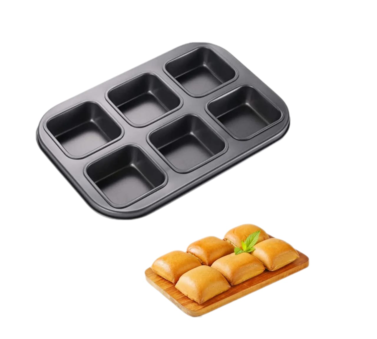 A 6-cavity brownie tray is a non-stick baking pan designed to bake six evenly sized individual brownies. Perfect for small batches, it ensures uniform shape, easy release, and a deliciously crisp edge on every piece.