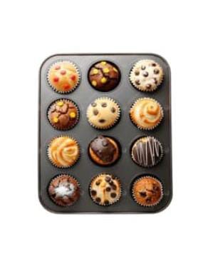 A 12-cavity cupcake tray (also called a muffin tin or cupcake pan) is a baking essential used to make 12 standard-sized cupcakes or muffins at a time. It’s a great tool for home bakers, especially for parties, birthdays, or batch baking.